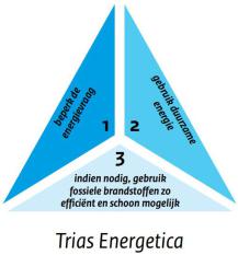 Het op de juiste manier verduurzamen van een gebouw is een driestappenstrategie Trias Energetica van toepassing. Dit om een energiezuinig ontwerp te maken.